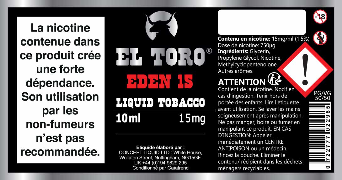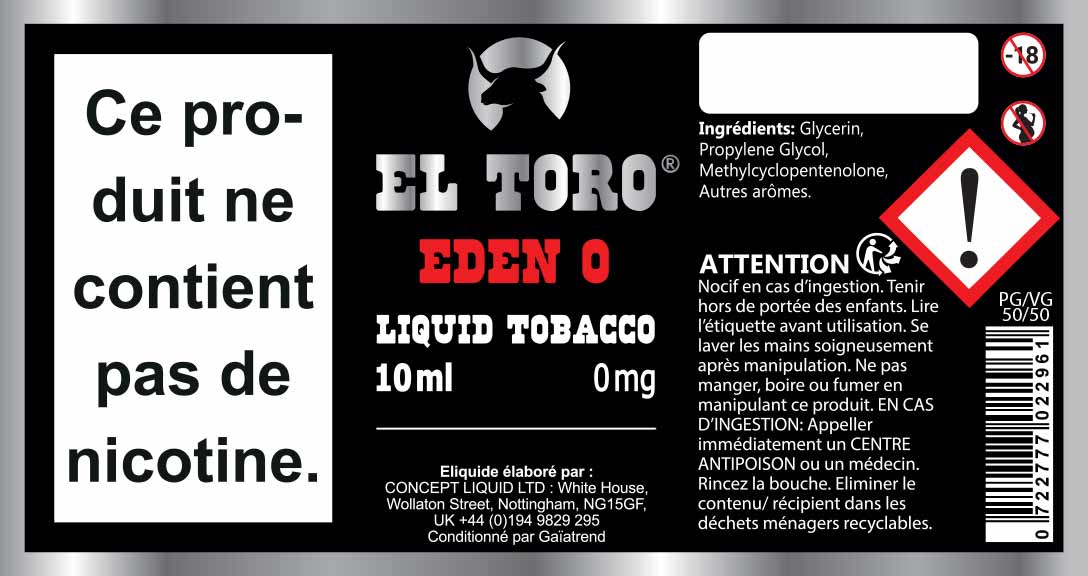 Les cigarettes électroniques ainsi que les e-liquides sont interdits aux mineurs, déconseillés aux femmes enceintes et aux personnes atteintes d'hypertension ou de maladies cardio-vasculaires. Si vous n'avez jamais fumé, ne commencez pas !