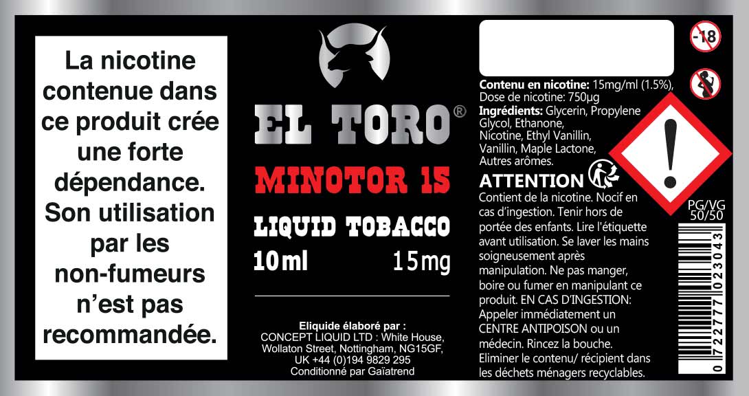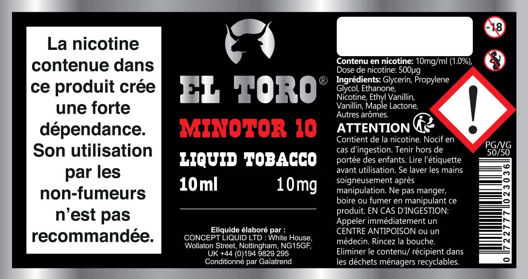 Les cigarettes électroniques ainsi que les e-liquides sont interdits aux mineurs, déconseillés aux femmes enceintes et aux personnes atteintes d'hypertension ou de maladies cardio-vasculaires. Si vous n'avez jamais fumé, ne commencez pas !
